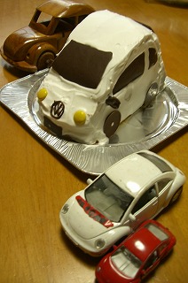 頭の中が、くるま・くるま・・の「にゆ」といっしょにどなたかのブログで、プロ級の自動車ケーキを見てしまったんです。それから半年・・・頭から離れなくって。「がんばり過ぎない毎日」が日々のテーマ根気のいる事はやめようと、りんごが素人なりに作りました~。土台の丸型スポンジは買ってきました。にゆの注文は「☆HUMMER☆」でしたがどでかい「ハマー」はどう考えても、私にはムリなので「ワーゲン ニュービートル」をモデルにしました。ザッハトルテのように、外側をチョコがけにしようか悩みましたが今回、生クリームで。にゆが学校から帰るまでに、溶かしたチョコでガラス部分と、サイドミラー、ナンバープレートとワーゲンのマークをつくって置きました。にゆのこだわりは、マーブルチョコレートのブレーキライト。上が 黄色 下が 赤 と半分に割って表現してます。 中には、いちごがサンドしてあります。食べたあとは、みんなのおなかの中でワーゲン君が走ってるよ と「にゆ」ははしゃいでます。 やっぱり、絵本作家を目指すだけあって、考えることが変わってる~プロに、お願いするならこちら~大好きな乗り物をそのままケーキに!!サプライズケーキナンバーワンはこれ♪★楽天ランキング入... クリスマスプレゼントは、これでした。ハマレーシングと、ランドローバー。シーシーピー 1/14スケール G-DRIVE ハマーH2 レーシングイエロー【税込】 Gドライブハマ...このハマー、すごいパワーです。でこぼこ道もへっちゃら、タイヤを水洗いできて時速18キロ・・・らしいので、クルマがこない道で遊んでいたらあまりの勢いで初日に、車軸が折れて、交換してもらいました・・・そのとき、いっしょに見ていた同級生兄弟くんたちが、ラジコン欲しくなったらしくてそのあとすぐに、買ってもらったらしいです。男の子だね~でも、初めてだったのか、同じ周波数のをご兄弟で買ってしまって勝手に動き出して慌てたらしいの。うちは、にゆしか動かさないからいいけどご兄弟で走らせるお宅は、購入時、周波数に注意しましょう。(なかには、同じ周波数でも「ABC」とスイッチひとつで3台まで遊べるものもあります~)