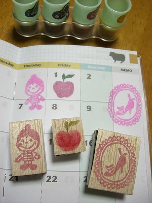 ブログで、いつも仲良くしてもらってるお友達、望乗さんと会える機会がありました。「京都に旅行で行くからね」って、連絡をもらってからもうソワソワ~他の方もご一緒らしいので会っても、声をかけていいものやら、ドキドキ当日、「新幹線○○号の○号車に乗ったよ」ってメールをもらってあいよー!って、落ち着かないのですぐに家を出ました。家から京都駅まで45分で着く距離なのに、1時間半も早く出ちゃって。アハハハッホームで新幹線の到着表示が出るともう心臓バクバク顔も声も知らない人との待ち合わせってめっちゃきんちょーです。まちにまったその新幹線がホームに入ってきました。お互いの服装は連絡し合ってたけれど「どんな人なんだろう。見つけられるかな」と、ドアが開いた瞬間「きゃぁ~~っ!!」望乗さんのほうが、りんごを見つけて飛んできてくれました。その彼女といったら、なんてかわいいっ!まるでアイドルみたいにキラキラして、まぶしいっ!「ベッキー」みたいにかわいいのっ。茶色い瞳で、目があうと、こっちはドッキンドッキン思わず手を取り合って、二人揃って「会えたねー!!」とにかく、感激感激でそれ以上言葉になりませんでした。「これを」って、大事に握り締めてた包みをもらいました。暖かい彼女の手と一緒で、プレゼントもとってもあったかかったです。お連れの方もたくさんご一緒なので、はじめから、声をかけられなくても、こしょっと顔を見るだけでもというつもりで、「ホームだけで失礼しよう」と思いもあって、彼女は改札口へと・・・でも、もう既に目立ってた?それなら、改札を出るまでしばらく一緒に歩けばよかった~。後悔図々しく、写真も一緒に撮ればよかったぁ。何よりも想像以上のキュートな美人で、りんごは、カチーンとホームで固まってたのでした。昔、府立植物園で偶然、皇族の方(常陸の宮さま?)のご一行に出会ったときも宮さまがにっこりしてくださって、カチーンって固まって、ボーゼンと見送ってたのを思い出しました。それくらい足がすくんでたの。良家のお姫様とは想像していましたが、うーーん、ベッキー似のこんなにもかわいい人が、4年生のママでしょ。信じられんこの日は一日、興奮が冷めませんでした。いただいたお土産はブログでも披露されている、手作りのけしごむはんこ。私のことを思って作ってくれたんだ~。ステキなくつは、ステキなところへ自分を運んでくれるんだそうです。とっても細かい根気のいる作業ですね。私のハンドルネームの「りんご」も作ってもらってます。大事に大事につかわせてもらいますね。