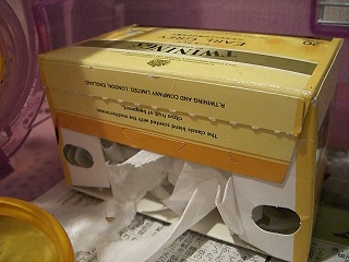 本日二つ目の更新砂浴びのお家では、落ち着かないらしく、このところトイレで眠ってるので困ってました。くちゃくなりそう~初めに購入した木製のお家はもう小さくて 入りきれなくなったのでお家を変えてみました。恐るべしプディングの成長。トワイニング+ティッシュが とっても気に入ったようです。白樺チップとか針葉樹チップの床材よりも テイッシュが好きっ。ハムちゃんのためにも、せっせとトワイニングを飲んでます