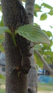 4月も終わりが近づいていると言うのに、何故にこんなに寒いのでしょう。雨もよく降るし。。。カラッと晴れてくれないかな~。こんな中、今年も芝桜は満開に咲いています。芝桜はほったらかしでも毎年綺麗に咲いてくれる手間の掛からない植物です。家のシンボルツリーの根元に植えてあるんです。そのシンバルツリーをよく観てみると。。。 見えますか?枝にヤモリがいるんです。3~4年前から家の庭に住み着いているのですが、毎年春になると姿をみせてくれます。昨年は親子3匹を確認しました。家の家族はこのヤモリが皆好きなんです。ヤモリがいる間は家が守られているような気がするんですよね。ただ問題はヤモリ好きが人間に留まっていないこと。。。ちゃちゃ君も大好きなのよね~(; ̄▽ ̄A当然ヤモリさんは傷だらけに。。。今年もちゃちゃ君の餌食にならないように、がんばって生き残ってね~! ☆ 母の日のプレゼント ☆