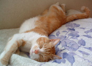 ニャンは暑くなってくると、お腹を上にして仰向けで寝ることが多くなるんです