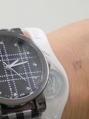 仕事中 腕時計は欠かせない のに・・・・ 忘れちゃいました 仕事に行く前に ちょっと寝転がった時に せっかくしていた腕時計外しちゃったのでした こんなそっそっかしい私ですので そんなときのために 休憩室のロッカーに予備の腕時計が・・・ いつも Baby-G なので日付も出るのですが 予備用はアナログ時計 でも今日の日付は 何かと必要 で・・・どうするかと言うと・・・(≧▽≦) ボールペンで『17』 日付もアナログ表示です(笑)