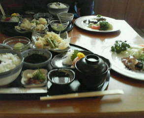 今日は、仕事の途中に父親がおうちに寄った。で、ランチに行くことに・・・各務原にある父親お気に入りの「マキ」というお店。すっごいボリュームなのよ!!!キスの天ぷら(それも二匹)他に、ごま豆腐の天ぷら。突き出しに五目まめの煮物。ステーキ。甘えび10匹(こんなにめずらしい・・)ごはんになめこの味噌汁。メロンのデザート・・・お盆にステ-キのらなくって別皿でやってきた!・・・・お腹いっぱーい・・・美味い!( ゚Д゚)ウマーお値段は・・・・なんと1000円ぽっきり♪いやー。ちょっとしたコース料理よ?これ?近くへお越しの際はぜひおでかけくだされ♪見た目は古めかしい感じ(汗)だけど中入ると、きれいにしてある店内。ランチ時期はいつも賑わってます♪それにしても最近、外食ばかり(;・∀・)かなーりお腹のお肉がたぷたぷしてきた(-。-;) まだ、ちょいとお食事のお誘いがあるからなぁ・・・外食強化月間だすな(-。-;)