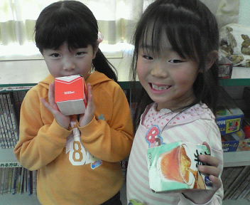 午前中、花のピアノいってから午後からパパさんはお友達と用事があったためおでかけ。残った三人でどこいこー?と悩んでました。天気がよかったから公園でも♪と思ってたんだけど風も強くなってきたんで児童館へいくことに♪岐阜市の児童館サンフレンド三輪へいってきましたー。着いたらちょうど、万華鏡作りというイベントやってた!早速、参加。牛乳パックと黒い紙とビーだまで作るお手軽万華鏡♪なかなかおもしろい♪この箱が万華鏡。角の部分から覗き込んでそのまた反対にしこんだビーダマが光るのをたのしみます♪その後、たくさんのゲームがあるなかたまごっちのボードゲームで三人でもりあがる♪こういうボードゲームって人生ゲーム以来だわ♪妙にうけた!こういうボードゲームっていいねぇ。人生ゲームわが家に1セットほしくなったわ・・・あとは定番。ボールプールにダイブする二人。いやー。こんなに楽しくて無料なんてサイコー♪またくるぜい♪