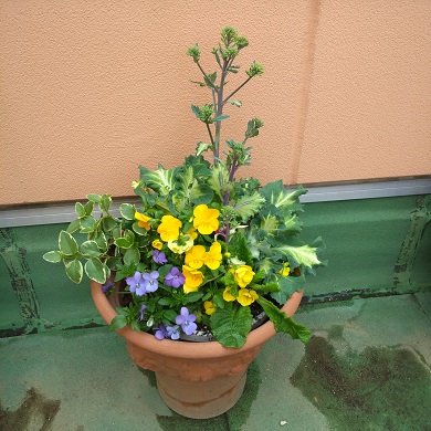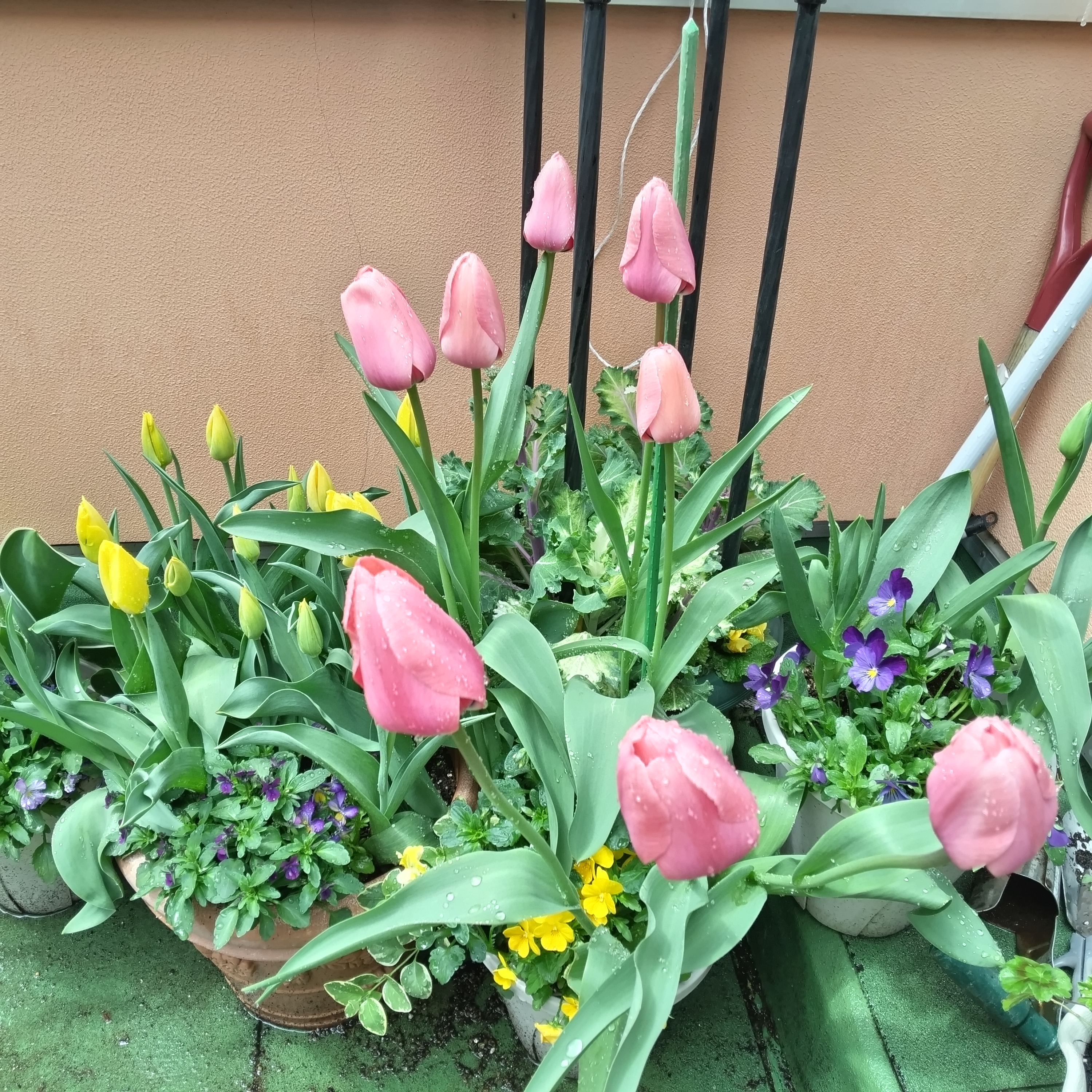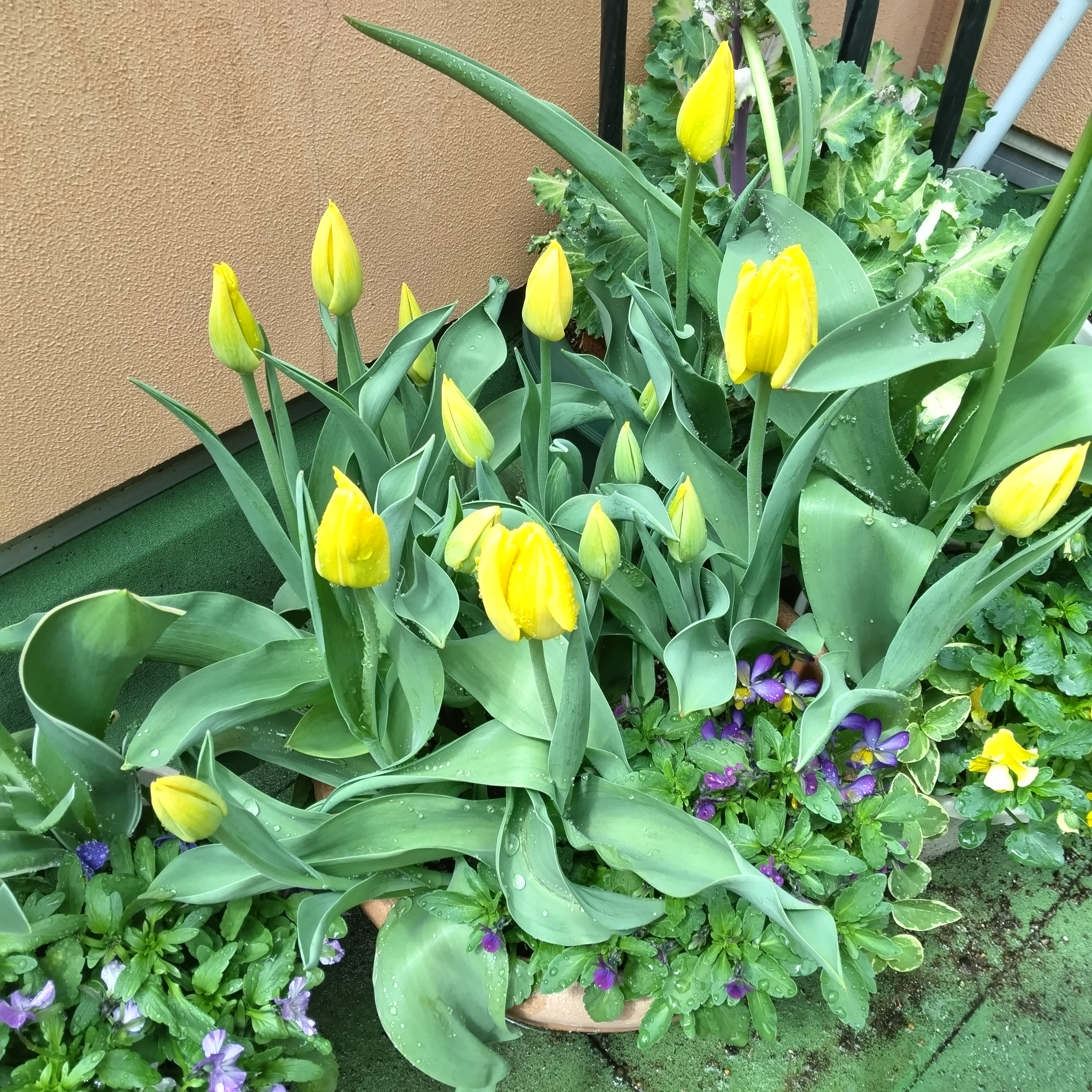 ビオラも伸びてきて、チューリップとのバランスが崩れてきました。