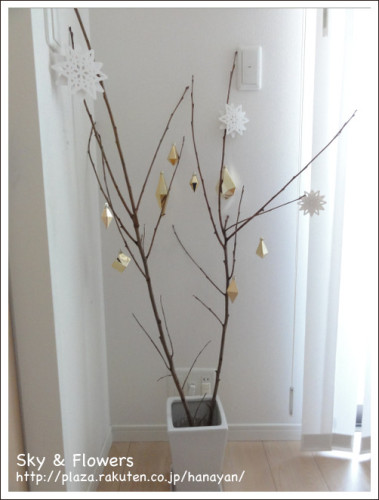 土曜日、実家(田舎)に帰った時の事。「お父さんが柿の木を思いっきり切ってしまって、柿も捨ててしまったんよヽ(-言-)ノ拾い集めて食べたよ!もう!」と、母。丸裸になった柿の木発見(;´д`)そして、庭の隅っこで燃やされかけてる柿の枝を発見…(いや、他の木の枝と混ざってたから、柿の枝じゃないかもしれんけど…)(☆_☆) キラーン!!こ、これはもしや…!いい感じの枯れ枝ではありませんか!!↓か…枯れ枝ツリー…完成!?素敵ブロガーさん達のお宅でよく見かける、枯れ枝を使ったクリスマスツリー。いいなーステキだなーーーー(*´∀`*)と思ってたんです。こんなんでいいのかしら。何か違う気もしなくもないけど…植木鉢に入れたのがまずかったかな?コレしか枝を立て掛けられそうなものが無くって。あと、あれかな?オーナメントをもっと素朴な、自然素材のやつとかにした方がよかったのかな?クリスマスツリーオーナメントはこの前IKEAで買ったLEDライトタイプ。ようやく電池を入れて点灯!…と、また最近IKEAに行って追加で買ってきたゴールドのオーナメント。実はホワイトも買っちゃいました。無駄に買い過ぎたかも。ゴールドのオーナメント、ちょっと作りは安っぽい感じもしますが、この形がすごく気に入ってます。ゴールドとホワイト、どっちにするか迷いに迷って両方買っちゃったんだけど、ゴールドの方が好きかも。イケアとりあえず、燃やされる寸前の枯れ枝が変身できたので、満足です♪話変わりますが… いつだったかのお買い物マラソンで買ったワンピース、可愛かったですよ♪身長約125cm、やせ形のお姉ちゃんに140を。なんか半袖Tシャツが大きいような気がしますが、可愛いです。生地はまあ、薄いです。これからの季節には寒いかも。でも上からコートとか羽織るんで、真冬以外は着れそう。おすすめ!お得!!な子供服情報♪ランキングに参加しています。↓よろしければ、ポチッと押していただけると更新の励みになりますにほんブログ村