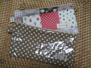 まるで夏のようなお天気です毎日公園に出かけていく子供たちが日に日に黒くなってるような……とりあえず元気なことがありがたいですイベントに向けていちごのカフェエプロンを作りました。いちごのキャンバス地は手芸ナカムラさんのもの。ポケットのタグはRickRackさんのいちごのものです。そして、7月開催のイベントでチャリティーブースをおくことになったので手に取り易いものをと考えてポケティケースを試作しました。まずはechinoの飛行機パッチ柄を使って。 鮮やかな配色で男の子でも持てそうな感じになりました。 サイズがいい感じだったので他の生地でもいくつか作成~♪ お気に入りはブラウン地ラメ入りレースモチーフ柄~o(*⌒―⌒*)oまたたくさん作ってみようかな~!