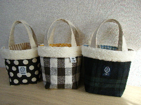 先日ノムラテーラーハウスさんのレジに置いてあったボア生地ハギレ。 手触りがとっても気に入ったのでそのまま少しだけ購入しました。 マフラーにも足りないかもという大きさだったので小さめのトートバッグに使ってみました。綿麻オックス☆渋め&大きめドットのブラックを使って。 名付けてふわもこトート♪タグはC&Sさん。 内布は黒いリネンのピンドット。ドット柄深いグリーンでも。こちらはサイドにC&Sさんのどこかのお店限定のくまさんタグ。内布はグリーンに生える花柄にしました。そして~、起毛のブロックチェックブラックでも。こちらはハートのハサミタグです。ボアを使ったのは初めてでしたが、意外と普通に縫えてよかったです。 ただ、コロコロと作業後の掃除機が必須! 冬のちょこっとしたお出かけに、お財布と携帯だけ入れて使ってみてほしいです。3つそろうとお色の違いが分かりますね♪**********************************ランキングに参加しています。よかったらポチっとお願いします♪にほんブログ村