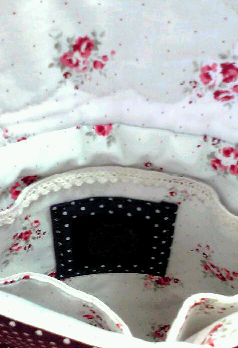 裏地はお気に入りの小花のコットン♪***ピンクパープルというと、派手になるかと思っていましたが、意外と落ち着いた感じになり、秋冬物にも合いそうです♪(*^_^*)