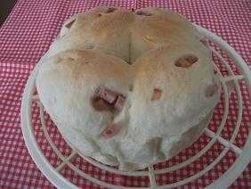 今日は、曇り時々晴れ。最高気温29度、最低気温22度の予報。今日は、明日は母の命日のためお寺参りに行ってきました。お花とお菓子を供えてお参りしてきました。帰ったあと、ゆっくり読書で~す(^^♪☆ソーセージちぎりパン★薄力粉 100g★強力粉 100g★ドライイースト 1.0g★砂糖 小2★塩麹 適宜★ぬるま湯 150cc◎マーガリン 小1◎魚肉ソーセージ 1/2本★をよく混ぜ、マーガリンを少しずついれて良く捏ねる。生地をタッパーに入れて発酵させ、約2倍になり指を刺してもどってこなかったら、一次発酵終了。ガス抜きをし、丸めてベンチタイム約10分。生地を長方形に伸ばして、カットしたソーセージをちりばめ4等分してケーキ型に入れて2倍になったら、180度で約15分焼いて出来上がり~♪ <b>ソーセージちぎりパン フンワリ焼けました~ 美味しいお菓子 いかが☆彡\楽天1位獲得/ 【レピマルカ公式】 バームクーヘン ティラミスバウムクーヘン バウムクーヘン スイーツ デザート 冷凍 洋菓子 ケーキ ギフト 誕生日 贈答 プレゼント お祝い オシャレ お取り寄せ とろ生 御祝 お返し