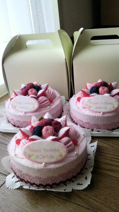 こちらも…過去の作品ですが~(^_^;) フェルトで「Birthdayケーキ」を作りました♪ ピンク系で まとまって、とっても可愛い~です(*^^*)