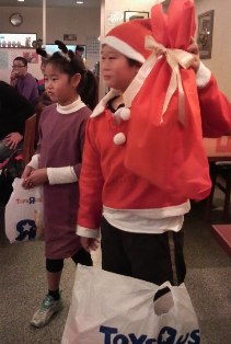 昨日は、お父ちゃんのお店の 忘年会でした~と言っても、数店舗の仲良しグループ、従業員と その家族も一緒!大人数で、 毎年、大騒ぎです お父ちゃんのお店 「絆べえ」 と、「哲粋」 「鎌谷商店」 「杉なか」 さま~ 奥様方 同士も、とっても仲良しです・・・その おチビちゃん達も たくさんいて、私にとって この会は、すご~く楽しい時間なんですよねっ そこで・・・クリスマス も間近~という事で・・・ 私は、ウチの息子ッチ&娘ッチと一緒に、おチビちゃん達への「プレゼント」を用意して、いざ!!! 「オレ、やるで」 と、息子ッチ サンタ「私も~」 と、娘ッチ トナカイすごく張り切って、やってくれましたよ~ ↓「よいこの みんな! あつまれ~!」 こういう役・・・結構、楽しいみたいですちょっと、お兄ちゃん・お姉ちゃんに なった気分~ おチビちゃん達も、何のことやら~???と思いつつも、ジワジワ 近づいてきました・・・「はぁ~い、プレゼントっ」 みんな、小さな体で、大きなオモチャ抱えて~と~~っても 可愛かったッス~ 気に入ってもらえたかなっ?? こんな小さな 子供たちをみると、もうホント、たまらなく 可愛くて 可愛くて~私は、もう・・・おばあちゃんになったような 気分です そして、そして・・・今日は、娘ッチの、ホントのお誕生日で~す 8歳に なりました~ プレゼントは、昨日、久々のJRに乗って、オモチャ買いに行きました~ 「たまごっち」の、なにやら・・・???私には よく分かりませんが、迷いなく チョイスしてました 今日は、お父ちゃんも お休みなので、一緒にケーキを買いに行って・・・外食して・・・おうちで ケーキにろうそく点けて・・・ 「クレヨン」の形の ろうそく・・・すごく気に入って、嬉しそうでした・・・ 娘ッチは・・・「なごみ」 といいます お父ちゃんの仕事が、ホントに大変だった頃・・・ホントに しんどくて・・・ 激ヤセして・・・心身共に、一番 大変だった時に、生まれたので 「人を なごませて あげられるような優しい子に なって欲しい・・・」 と、つけました~ 響きが いいから~とか、可愛いぃ 感じやから~と、思いつきで つけたのではなくって・・・× 一番しんどい 辛い時期だったからこそ、 「こういう思いを、分かってあげられるような、優しい子に なって欲しい・・・」という、心の叫びのような、私たち夫婦の 思いのこもった、名前なんですよね~ そんな 娘ッチは・・・家の中では、ホントに 我がままで、大変な子です でも、時々~家族全員が、お腹を抱えて 「もう 勘弁して~」 って 言うくらい笑わせてくれる時が あるんですよね~ あなたが いてくれるから、家族みんな、なごませて もらっていますよっ ホントに、ありがとう・・・ あなたが 静かに、一生懸命 努力している姿、母は よ~く 分かっていますよっえらいねっ 私が 調子悪い時、一番に 敏感に察知してくれて~いろいろ お手伝いしてくれて・・・ありがとう 優しい子に育ってくれて、嬉しいよっこれからも、母を助けてねっ 最後に・・・お決まりの、これ↓↓ガブリッ