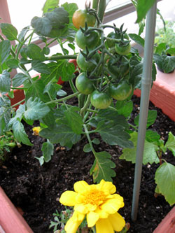 まずはミニトマトの苗をマリーゴールドとシソをコンパニオンプランツにして寄せ植えをしてみました♪(ホームセンターの方にはトマトはトマトのみで植えたほうが実付きがいいよと言われましたが^^;)でも いいや(*´∇`*) 収穫も楽しみだけど 見た目にも楽しみたいしね♪ミニトマトはバジルと相性がいいので その組み合わせで寄せ植えにしたら キッチンでの活用度が高いかも!次に、適当に花なども寄せ植えもしてみましたこの花(なんとかデイジーというキク科の花)とアイビーが相性いいのか不安だけど、、まぁいいかそれから 昨日ようやくブラックベリーが手に入りました!!!ブラックベリーなんかかわいい♪ 思ったより清楚な感じ!これから実が赤くなり黒くなるのねっ!!成長過程を想像すると興奮して鼻息あらくなっちゃうわ( ̄ε=‥=з ̄)!↑変だーー私^^;カラント 安かったので(398円)これも買ってしまいました^^;ちゃんと育てられるかなぁはーー実のキレイさにうっとり♪本には房状に実る赤い宝石とあったわ本当にキレイな実ベランダに出ると癒されますでも虫と鳥対策 プラス 妹ちゃんの暴走(実でも花でも葉でもちぎりとる)をきちんと考えねば、、これからの夏の暑さもベランダの植物にはダメージがかなり強いようですし(><)頑張らないと!! また時々野菜やベリーの成長を報告しますね(*´∇`*)ノ