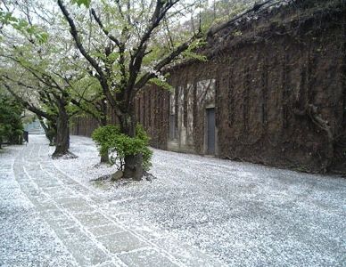 ♪ あでやかに歩道を染めて散り敷ける雨に殺られし桜の最期 ‥‥‥‥‥‥‥‥‥‥‥‥‥‥‥‥‥‥‥‥‥‥‥‥‥‥‥‥‥‥‥‥‥‥‥‥‥ 一面にピンクの絨毯を広げたように艶やかに歩道を染めた一角があった。夜来の強い雨と風に、遅れて咲いた八重桜も無残なまでに散ってしまった。 八重桜だけあって花びらの量がすごい。たった一本の木が散らせた花びらが辺り一面に散り敷いて、濡れた歩道はピンクの氾濫の体。 雨に溶けた塗料を無造作にぶちまけたようでもあり、壮絶な桜の最期を見るようで、ちょっとドキリとするような風情だった。 八重桜は咲いている時も厚化粧の花魁のようなイメージがあるが、散り際もさすがに迫力がある。咲いている時よりも、むしろ散っている時の方がいいかも知れないな。 春の嵐に遭って劇的な終わり方ではあったが、この地方の桜の季節はこれで本当に終わったね。 それにしても今年の桜は全国で様々なエピソードを生んだことでしょう。こんな美しい散り方はいいですね。散ってなを余韻を楽しませてくれますね。「ゆう」さんの写真 また、写真でしか知りませんが、桜の花に雪が積もっている情景は哀れというより新鮮な感じがしたものです。 私が行った高遠城址の桜も、翌週に行った知人は雪で道路が封鎖されて途中で引き返したそうです。 桜の花が雪に覆われ見えなくなるような春の雪のことを東蒲原地方では「桜かくし」と呼び、十日町方面では、眠っていた木の芽を覚ますので、「木の芽さまし」と呼ぶらしい。「日歌」が千首を超えたのを機に、「游歌」とタイトルを変えて、2009年2月中旬より再スタートすることにしました。★ 「ジグソーパズル」 自作短歌百選