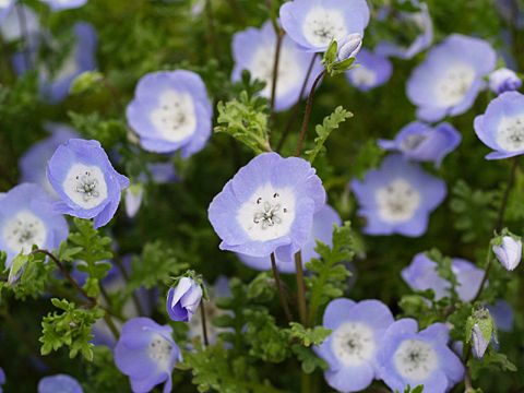 ♪ 庭先に咲く花見れば一目ぼれ散らずにもがな名を問うまでは 初めてみる珍しくも美しい草花が、ある家の歌壇に咲いている。青い洋花で漏斗状の花弁が、折り畳み式の落としぶたのようにきれいに重なって咲いている。 名前が分からない。ネモフィラという花の様な気もするが違う様な気もする。花の中心部に黒い点があるというので良く見れば判別できそうだ。もう一度しっかり見てくることにしよう。 家人に会ったら名前を聞いて見るつもりだ。ネモフィラ・メンジーシー 何でもそうだが名前を知る事は重要で、知る事によって自分に近づき自分のものになっていく。知らないうちは距離を感じているものが、知ると同時にその距離が縮まる。 ウォーキングのコースにしているパークロードには色んな花や木が植えられているが、その名前が分からないのが幾つかある。 以前、市の担当に名札をつけてくれるようお願いした事があるが、そのままになっている。知りたいのに分からないのは、どうにも落ち着かない気分なものだ。 人の名前もそうで、名前を知らないうちは他人のままだが、知った瞬間から親近感が湧く。知らなければ声も掛けずらい。◆2006年5月8日よりスタートした「日歌」が千首を超えたのを機に、「游歌」とタイトルを変えて、2009年2月中旬より再スタートしました。◆2011年1月2日からは、楽歌「TNK31」と改題してスタートすることにしました。★ 「ジグソーパズル」 自作短歌百選(2006年5月~2009年2月)