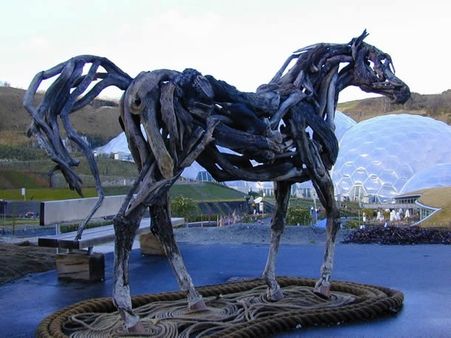 ♪ 執念と直観力が流木に命を与ふアートなるべし Heather Jansch は1948年生れ。イギリス(イングランドが正しい)の女性流木アーチストだ。 絵と馬が好きで、レオナルド・ダ・ヴィンチに憧れるおてんばの田舎娘だった。山麓の丘陵地帯に居を構えた世界的な芸術家になる夢を持っていた。 ビジュアルデザインを学ぶためにウォルサムストー大学に入るも挫折し、ロンドンの有名な金細工師大学へ。しかし、そこでの授業にもついて行けず1年で退学となる。 乗馬の絵を描く仕事に就き、結果を出すも自分の技量の不足を痛感する。アーサーGiadelli(国際的立場の芸術家)に助言を求め、馬を良く観察すること、結果を急いで求めないという助言を得る。 それで、馬の油絵を描きながらそれを実行していた。 在る日、だしぬけに海へ入り流木に出会う。その時、雷に打たれるように流木馬のイメージが閃く。そこから自分の表現すべくものの確信を得、その道へと突き進むようになっていった。バックには沢山の流木のストックが上はすべて等身大で出来ているこの3枚はミニサイズの馬 馬だけでなくこんなものも制作している。 これらも塑像というものの範疇にはいるのだろうか。彫刻ではないし粘土などの可塑性の材料で造るものとも違う。 大型のものは金属のフレームをベースに、銅線とねじで固定して制作されている。粘土で作るのとは違って細かい調整は利かないだけに、頭の中に確固とした形がなければならない。どうしてもフォルムが甘くなってしまう恐れもあるが、造られた作品にはそんな部分は全く見られない。 余程のデッサン力と観察力、馬に対する愛着と造詣が深くなくてはこうはいかない。 本物よりもずっと魅力を感じさせるこれらは、これが芸術というものだと実感させてくれる。作者◆2006年5月8日よりスタートした「日歌」が千首を超えたのを機に、「游歌」とタイトルを変えて、2009年2月中旬より再スタートしました。◆2011年1月2日からは、楽歌「TNK31」と改題してスタートすることにしました。★ 「ジグソーパズル」 自作短歌百選(2006年5月~2009年2月)