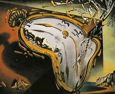 ♪ 流れ来る時間(とき)に小舟を浮かべつつ今やって来る未来を迎ふ 人が感じている時間という概念は、決して絶対的なものではない。その時の置かれた状況によって長くもなれば短くもなる。場合によっては歪んだりしているかも知れない。 例えば同じ曲を流しても、安静にしていたり寝ぼけている時は速く聴こえ、激しい運動・活動の後では遅く聴こえる事がある。こうした場合、感じている時間の速さに相対的な違いがあると言える。また、年齢を重ねれば重ねるほど、1日なり1年が過ぎるのが速くなってきている。7歳の子供にとっての1年が人生の7分の1であるのに対して、70歳のお年寄りにとっての1年が人生の70分の1あることからも分かる。 それぞれの国や地域、民族の間で勝手に流れていた時間が、機械的時計の発明によって時間に追われる生活を強いられるようになった。 先行する時間を追いかけるような不可能な概念に弄ばれて、喘ぎ喘ぎ生活している現代人。 太陽暦のもとで、昔のように日の出とともに起き、日没とともに休息に入る生活をしてれば、現代病には絶対に罹らない。ダリは、時計に対して一種の嫌悪感を持っていたのかも知れない。 実際に売られているダリの「とろけ時計」ひげが針になっていて回転する。クリックで動画へ 左 掛け時計のダリウォッチ、 右 イタリアの置時計 「時間は過去から未来へ流れているのではなく、未来から過去へ流れている」。 創造主が世界をつくった、とするユダヤ・キリスト教の伝統に沿った時間観には、「時間というのは過去から未来に向かって流れている」とする考え方があるらしい。 創造主のいる宗教では「絶対神がビッグバンを起こし宇宙を創造したことからすべてが始まり、それにより玉突き的に因果が起きて現在まで来た」と考えたがる。そう考えないと創造主自体の存在を肯定できないので、「過去の出来事が現在の原因である」と解釈されることになるというのだ。 “過去の因果によって現在、そして未来がある”などと考える限り、自分自身で明るい未来を切り開くことなどできない。 自分に向かって未来がどんどんとやってきては過去へと消えてゆく(自分が過去から未来へと向かっているのではなく)。未来のほうが自分に向かって流れてくる感覚。 現在は過去の産物などではなく、未来の産物であり、しかも未来というのは固定されたものではなく、無限の可能性であり、しかもその未来は(過去の因果ではなく)さらに未来の因果によって決まる、ということになる。 Wikioediaよりスイスの「リベンハム(Libenham)」の時計文字盤が中心から右へずらしてある。 左の腕に着けることを念頭に、シャツに隠れて見にくくなることに対応。リュウズも左側に付けて、邪魔にならない配慮がしてある。 敢えて電池は使わない「機械式の自動巻き」にしてある。人の腕の自然な動きと振動で歯車が回転し、ゼンマイを巻き上げる古き良き時計の真髄を見せる。 高い技術を要する「機械式」は、今でも多くの高級時計に用いられているらしい。フランク・ミュラー「クレージーアワー」フランク・ミュラー「Aeternitas Mega 4」価格▼$2,700,000(約2億1960万円/2010/11現在)●4日パワーリザーブの自動巻 ●トゥールビヨン ●グラン&ソヌリ ●ミニッツ・リピーター ●ウェストミンスターカリオン付きグランソヌリ ●スプリットセコンド・クロノグラフ ●1000年間エターナル・カレンダー ●デイズ●マンス ●24時間計 ●閏年計 ●ムーンフェイズ ●均時差計 ●2タイムゾーン計測 これはもう時計などと言えるものではなく、究極の機械的構造をもったアートと呼ぶべきものだろう。これで時間を確かめるなんてことはしないはずだし、そんなことなどどうでもいいと想わせる”とてつもない”ものだ。 時計の歴史◆2006年5月8日よりスタートした「日歌」が千首を超えたのを機に、「游歌」と タイトルを変えて、2009年2月中旬より再スタートしました。◆2011年1月2日からは、楽歌「TNK31」と改題してスタートすることにしました。★ 「ジグソーパズル」 自作短歌百選(2006年5月~2009年2月)