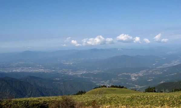 ♪ 天上へ抜けゆく山の頂は白日返す熊笹の原 好天の今日、中津川の友人のパッチワークの似顔絵展を見に行くついでに紅葉の始まった岐阜の山の紅葉狩りへ。 ターゲットは恵那山の隣に位置する富士見台高原。ヘブンス園原へロープウェー経由で行く方法もあるが、それでは余りにも情趣がない。 いろいろ調べると車で林道を使って裏側から登れることが分かった。上坂峠まで車で行き、そこから歩いて富士見台高原まで40分ほど。呆気ないほど簡単に行けてしまうことに多少不満はあったが、あまり時間的余裕がないのでOKとする。 また、この神坂峠というのは1300年前に整備された由緒ある古道で、滋賀県から東北へと続く重要なルートであり、当時は最大の難所だったらしいこと。そして、古事記や日本書紀をはじめ多くの古文学に地名や歌枕として取り上げられているということを知り、大いにに興味をそそられたのも選定の理由になった。眼下に中津川の街を見下ろす 富士見台高原頂上(1739m) 登ってみれば、そこは一面熊笹の生い茂る遮るものの何もない360度パノラマの別天地だった。クマザサの生い茂る風景というのは、ヒッチハイクで訪れた北海道の帯広平野の牧場のある片田舎で目に焼きつている風景がある。 それ以来のクマザサの原で、昼前の強い日差しに照らされて、順光側は陽を照り返し、逆光側はその密集の影が圧倒的なスケールで広がっていた。 ♪ 熊注意の林道抜けて至りたる頂上一面熊笹の原 昼近くなり、雲が出てきて風も冷たくなってきた。早々に下山して、目的地の中電ギャラリーへ。 DM写真では分からない、微妙なミシン使いや顔のディティールが想いのほか手が込んでいるのを知り、そのセンスとテクニックに感動。微妙な顔の表情や立体感の出し方に工夫があり、かなり試行を繰り返した上で到達した表現世界だと分かた。 そのニュアンスの一部でもお伝えできればと、許可を得て写真を撮らせててもらった。どの作品もいい味を出している。同級生や友人をモチーフにしているだけにその人柄までも伝わってくる。 この絶妙な糸さばきは、一見の価値ありだ。 息子さんが経営しているイタリアンの店でランチを摂り、頂いた珈琲券で落合にある蔵をイメージした珈琲店「かわらや」で「お茶」して帰る。 中津川駅前にある「おふくろ」という店の団子型の五平餅は絶品だけど、あいにくこの日は定休日。 その代わりでもないが、去年・今年と食べそこなった栗のリベンジの意味もあって、中津川の老舗川上屋で「栗きんとん」を買って帰る。◆2006年5月8日よりスタートした「日歌」が千首を超えたのを機に、「游歌」と タイトルを変えて、2009年2月中旬より再スタートしました。◆2011年1月2日からは、楽歌「TNK31」と改題してスタートすることにしました。★ 「ジグソーパズル」 自作短歌百選(2006年5月~2009年2月)