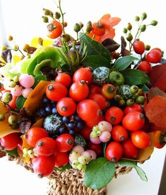 ♪ 食べごろの朝の下調べに入れ替わりくる鳥の悦楽 ようやく色づいてきた隣家の柿の木。この実を食べるためにいよいよ鳥たちの争奪戦が始まる。 先ずはどの程度の熟れ具合なのか、毎朝、入れ違いで下見にやって来る。 昨日、最初にやって来たのが二匹のハシブトガラス。大きな声で縄張りを主張し、威嚇するように鳴いていた。まるでブルータスの様だ。 今朝は、ヒヨドリがまずやって来た。その様子を隣の木で窺いながらメジロが飛び回っている。ヒヨが行ってしまうと一頻りメジロがチェック。その間をシジュウカラが虫を求めて、木の枝を行ったり来たり。 だいぶ前に様子を見に来た椋鳥は、その後まだ姿を見せていない。まだ少し早いというのが分かっているのだろう。 11月中旬ころに柿が完全に熟れる様になると、これらの鳥が競うように入れ替わり立ち替わりやって来る。 午前中にメジロの一群がやってきて賑やかに啄み、午後になると今度はムクドリの軍団がやってきます。喧しい声で鳴きながら先を争うようにして食い散らかして行く。 そしてその間、ヒヨドリが時なしにやって来て大きな声で威嚇しながらそのワル振りを発揮する。 夕方近くなると、今度はスズメの一群がやって来る。 雀だってフツーツは好きなのだ。餌台にメジロ用に置いてある蜜柑を食べに来たりするぐらいだ。 それぞれの活動時間が違うのか、かち合わないための知恵なのか、時間帯がずれているのが面白い。ヒヨドリだけは例外で、この世で一番強いと思っているのか、のべつ幕なしやって来ては大きな顔して喰い荒す。『実りの秋のアレンジ』smAll tAlkさんにお借りしました。フラワーアレンジメントの店La hortensia azulの作品とか。 この実りの秋は、多くの動物にとって至福の季節だ。 しかし、自然の中で生きている動物たちは餌不足で、かなりシビアな生活を余儀なくされているようで、各地で野生動物の被害が出ている様子。 たらふく食べて冬に備えなければならない動物たちにとって、この国はますます生きにくい国になっているようだ。 ともあれ、庭があり、そこに実のなる木が有るというのは豊かなことです。 名古屋市内に、林檎の木があって立派な実をつけている庭がある。この地方で出来た林檎が美味いのかどうかは分からないが、その実が真っ赤に実ってる様子を想像するだけで豊かな気分になる。◆2006年5月8日よりスタートした「日歌」が千首を超えたのを機に、「游歌」と タイトルを変えて、2009年2月中旬より再スタートしました。◆2011年1月2日からは、楽歌「TNK31」と改題してスタートすることにしました。★ 「ジグソーパズル」 自作短歌百選(2006年5月~2009年2月)