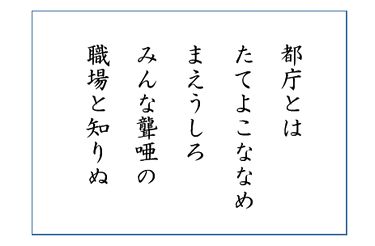 ♪ 都庁とはたてよこななめまえうしろみんな聾唖の職場と知りぬ‥‥‥‥‥‥‥‥‥‥‥‥‥‥‥‥‥‥‥‥‥‥‥‥‥‥‥‥‥‥‥‥‥‥‥‥‥‥‥ ♪ 泥水をかぶりて震ふ萩の花見上げる先の小池劇場 ♪ めくら判を億個供へて伏魔殿 象徴として知事を祀らむ ♪ 連日をハイエナ群れて餌を追うしばし喰うには困らぬTV ♪ 調査費が名前を変へて嬉々として摩(す)り呼び倣ふ政務活動費(せいかつひ)とや◆2006年5月8日よりスタートした「日歌」が千首を超えたのを機に、「游歌」とタイトルを変えて、2009年2月中旬より再スタートしました。◆2011年1月2日からは、楽歌「TNK31」と改題してスタートすることにしました。◆2014年10月23日から「一日一首」と改題しました。◆2016年5月8日より「気まぐれ短歌」と改題しました。★ 「ジグソーパズル」 自作短歌百選(2006年5月~2009年2月)☆短歌集「ミソヒトモジ症候群」円居短歌会第四歌集2012年12月発行●「手軽で簡単絞り染め」