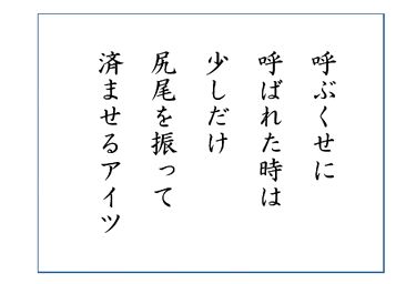 ♪ 呼ぶくせに呼ばれた時は少しだけ尻尾を振って済ませるアイツ‥‥‥‥‥‥‥‥‥‥‥‥‥‥‥‥‥‥‥‥‥‥‥‥‥‥‥‥‥‥‥‥‥‥‥‥‥‥‥ 猫ブームはいつまで続くのでしょうか。減速社会になってますます猫の存在は大きくなって行くような気がしないでもない。わが家も4代目のピピが、相変わらず背中を擦れ!トントンやれ!と、玄関に寝そべって大きな声で呼んでいる。 昨日は、朝から階段の上で鳴いているので変だなと思っていたら、毎週木曜日の午後は、孫を預かる日だった事に気が付いた。こっちが曜日を忘れているのに、彼(ピピ)はどうもその曜日が分かっている風なのだ。 そんな猫の不思議な魅惑の虜になっている人達は多い。ネコをモチーフにした色んなキャラクター画像を集めて見た。 塚不二夫のニャロメレトロタウン青梅 赤塚不二夫会館ばか田神社 愛猫「菊千代」の招き猫表通りの菊千代像 キティちゃん フリックス・ザ・キャット ホワッツマイケル THE SECRET LIFE OF PETSニャジラ トムとジェリー京都動物愛護フェスタ キャラクターねこの色々2つの顔”を持つ「ビーナス」 堪らんの~ さあ、仕事しようっと。◆2006年5月8日よりスタートした「日歌」が千首を超えたのを機に、「游歌」とタイトルを変えて、2009年2月中旬より再スタートしました。◆2011年1月2日からは、楽歌「TNK31」と改題してスタートすることにしました。◆2014年10月23日から「一日一首」と改題しました。◆2016年5月8日より「気まぐれ短歌」と改題しました。★ 「ジグソーパズル」 自作短歌百選(2006年5月~2009年2月)☆短歌集「ミソヒトモジ症候群」円居短歌会第四歌集2012年12月発行●「手軽で簡単絞り染め」