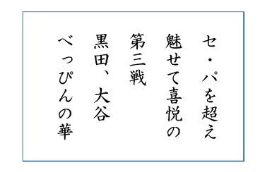 ♪ セ・パを超え魅せて喜悦の第三戦 黒田、大谷べっぴんの華‥‥‥‥‥‥‥‥‥‥‥‥‥‥‥‥‥‥‥‥‥‥‥‥‥‥‥‥‥‥‥‥‥‥‥‥‥‥‥ 昨夜の日本シリーズ第三戦は良かった。前に試合に良いところなく負けた日ハムは、絶対に落とせない本拠地での初戦。 広島は、予定通りの黒田が先発。この黒田が良かった。一球ごとに球種を変え、配球を全く読ませない組み立ては流石、MLBで活躍しただけのことはある。 バッターとバッテリーの心の読み合い、そしてとかけ引き。次に何を投げるかを予想するも、悉く外される。 野球を観る面白さは、そのかけ引きに参加して自分も選手になったつもりで、このピッチャーの配球を読むことにある。状況(アウトカウント、塁上のランナーの有無、得点差、イニング数など)を考えながら、一球ごとに変わっていくドラマに自分も参加して観る楽しさ。 黒田は、満身創痍の状況で日本に帰って来た。そんな中で野球に懸ける最後の情熱を燃やしてきた。今季限りで引退を表明したのをファンの誰もが分かっている。どうしても勝たしてやりたい。 しかし、その限界がやって来てしまった。六回途中で下半身に問題が出て医務室へ。この時点でファンも「ああとうとう来たか」と覚悟しただろうと思う。再びマウンドに立って一球投げて見たが、そのまま降板という事になった。この一球投げたということで、ファンに対する黒田の誠意と男気を見せたのだ。 41歳。試合は負けたが敗戦投手にはならない。球界に伝説を作った男がまた去って行く。黒田が残したものは計り知れない。10回、サヨナラ打を放ち、ナインと喜ぶ日本ハム・大谷 大谷は、初戦のピッチャーとして仕事が不完全に終わったのを糧にして、この日は指名打者としてワンマンショーの印象さえある活躍をみせた。 黒田からは二塁打2本、延長十回の裏に内角のボール球に反応して打ち抜き、これが決勝打となった。こいつも、次々と歴史を塗り替えている破格の別品(べっぴん)。まだ22歳と若い盛りの二刀流は、明日(第5戦)、2度目の先発になるだろう。 投打に活躍する姿を見て、4番の中田は「打つだけの俺が小さく見える」的なことを言っている。こんな選手はもう二度と現れないだろう。始めっからMLBに行きたかったぐらいだから、中途半端な気持ちで日本でのプレーをすることは無い。 この日の黒田の姿を目に焼き付けている。そして、間違いなく破格のレジェンドになる。◆2006年5月8日よりスタートした「日歌」が千首を超えたのを機に、「游歌」とタイトルを変えて、2009年2月中旬より再スタートしました。◆2011年1月2日からは、楽歌「TNK31」と改題してスタートすることにしました。◆2014年10月23日から「一日一首」と改題しました。◆2016年5月8日より「気まぐれ短歌」と改題しました。★ 「ジグソーパズル」 自作短歌百選(2006年5月~2009年2月)☆短歌集「ミソヒトモジ症候群」円居短歌会第四歌集2012年12月発行●「手軽で簡単絞り染め」