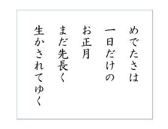 ♪ 来年はあそこに立つと吹聴し鬼門に貼らん「笑うな」の文字‥‥‥‥‥‥‥‥‥‥‥‥‥‥‥‥‥‥‥‥‥‥‥‥‥‥‥‥‥‥‥‥‥‥‥‥‥‥‥ 昨日は「歌会始の儀」の日、テレビの前に陣取ってゆっくり拝見させていただいた。入選者の奥宮さんはカツオの一本釣りを歌にした。50年間応募を続けてようやく入選された最高齢の人で、その続けてこられたことにも意義がある。教育関係者が3名もいたのも興味深かった。 それぞれの入選歌に私なりの感想や感じたことなど考察し、いずれ昨年同様に書いてみたいと思います。取りあえずは、歌の紹介に留めます。天皇陛下の御歌【贈られしひまはりの種は生え揃ひ葉を広げゆく初夏の光に】 阪神淡路大震災・被災地から10年の追悼式典に出席した際、震災で姉を亡くした少女から送られたひまわりの種を御所の庭で育て続けておられ、その育ちゆく姿に復興の想いを込めて歌われたもののようです。 この時は陛下以外、全員が起立して拝聴する。 一般入選、召人、選者の順に古式に則っとり披露される。長い棒読みの後、独特の節回しで歌われる。その後に皇族の歌が披露され、一番最後に陛下の歌が三回繰り返して歌い披露される。 皇后陛下 今しばし生きなむと思ふ寂光に園(その)の薔薇(さうび)のみな美しく 皇太子さま 雲間よりさしたる光に導かれわれ登りゆく金峰(きんぷ)の峰に 皇太子妃雅子さま 大君と母宮の愛でし御園生(みそのふ)の白樺冴ゆる朝の光に 秋篠宮さま 山腹の洞穴(どうけつ)深く父宮が指したる先に光苔見つ 秋篠宮妃紀子さま 日の入らむ水平線の輝きを緑閃光(グリーンフラツシユ)と知る父島の浜に 秋篠宮家長女眞子さま 日系の百十年の歴史へて笑顔光らせ若人(わかうど)語る 秋篠宮家次女佳子さま 訪れし冬のリーズの雲光り思ひ出さるるふるさとの空 常陸宮妃華子さま つかの間に光る稲妻さ庭辺の樹木の緑を照らしいだし来(く) 寛仁親王妃信子さま 被災者の苦労話を聴きにける七歳(ななさい)が光れる一語を放つ 三笠宮家彬子さま らふそくの光が頼りと友の言ふ北の大地を思ひ夜更けぬ 高円宮妃久子さま 窓べより光のバトンの射し込みて受くるわれらのひと日始まる 高円宮家長女承子さま 朝光(あさかげ)にかがやく御苑(みその)の雪景色一人と一匹足跡つづく来賓席【召人】 敬称略 鷹羽狩行(たかはしゅぎょう) ひと雨の降りたるのちに風出でて一色(いつしよく)に光る並木通りは【選者】 篠弘 手づからに刈られし陸稲(をかぼ)の強(こは)き根を語らせたまふ眼差 し光る 三枝昂之(さいぐさたかゆき) 歳歳(さいさい)を歩みつづけて拓く地になほ新しき光あるべし 永田和宏 白梅にさし添ふ光を詠みし人われのひと世を領してぞひとは 今野寿美 ひとたびといふともかげりおびてのち光さすとはいひけるものを 内藤明 日の光人の灯(ともし)に移りゆく川沿ひの道海まで歩む会場配置正面の両陛下、皇族に正対して召人、選者、その後ろに入選者が並ぶ。向かって右側に来賓席、左側が招待者席と思われる。 一般応募作品から規定違反などを除いた選考対象総数は2万1971首。2千倍の競争の中から選ばれた10首は次の通り。敬称略 土佐の海ぐいぐい撓ふ竿跳ねてそらに一本釣りの鰹が光る 高知県 奥宮武男(89) 剪定の済みし葡萄の棚ごとに樹液光りて春めぐり来ぬ 山梨県 石原義澄(82) 湿原に雲の切れ間は移りきて光りふくらむわたすげの絮 福島県 逸見征勝(79) 大の字の交点にまづ点火され光の奔る五山送り火 奈良県 荒木紀子(78) 分離機より光りて落ちる蜂蜜を指にからめて濃度確かむ 栃木県 大貫春江(77) 光てふ名を持つ男の人生を千年のちの生徒に語る 岡山県 秋山美恵子(66) ぎりぎりに光落とせる会場にボストン帰りの春信を観る 福岡県 瀬戸口真澄(65) 無言になり原爆資料館を出できたる生徒を夏の光に放つ 岡山県 重藤洋子(58) 風光る相馬の海に高々と息を合はせて風車を組めり 秋田県 鈴木仁(58) ペンライトの光の海に飛び込んで私は波の一つのしぶき 山梨県 加賀爪あみ(16)「歌会始の儀」入選者(左から)加賀爪あみ、鈴木仁、重藤洋子、瀬戸口真澄、秋山美恵子大貫春江、荒木紀子、逸見征勝、石原義澄、奥宮武男(敬称略)