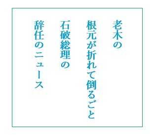 ♪ 老木の根元が折れて倒るごと石破総理の辞任のニュース 昨日は色々あった。ブログを書く変わりに短歌に詠み込んで日記とする。♪ 次は誰?いまよりもっと悪くなる国を憂えぬ保身蠢く♪ ぶっちぎり一強五弱のプロ野球優勝に湧くトラ虎のトラ♪ つぎつぎと水音上げてトラファンら道頓堀に「河童」のコール♪ あと一人無念の一発山本由伸(やまもと)のノー・ノー逃せし瞬間の空♪ 山本よ西口文也は3度ある逃した事を糧とするべし♪ 女子バレー二十センチの身長差果敢に攻めて銅ならず 惜し♪ ブラジルに2セット取られ追いついて最後もジュース 負けに価値あり♪ ベッド横まっ正面に眺めおり遠く小さく月食われゆく♪ 月満ちて一直線に並ぶ星大にて小を制するを見る♪ 独創の手塩にかけし衝立の三本揃いて嫁にいきたり♪ 名古屋栄しにせ呉服の一室に着付けの生徒と和して立つらん緊急の記者会見河童コールの道頓堀山本、一発に泣くあと一歩だった。3年ぶり衝立