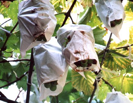 袋がはちきれんばかりになったぶどうの一部が腐ってきた。