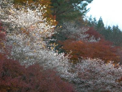 愛知県の三河地方の 小原村 には至る所に咲いていて、紅葉と色の饗宴と言ったところでしょうか。