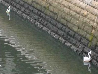 裏の川には有名な白鳥・・糸に繋がったダミー・・が泳ぐ・・・