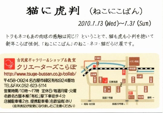 絞り染めのメッカ・名古屋市緑区有松町にある古民家ギャラリー 「クリエーターズこらぼ」 で”猫”をテーマにしたクラフト・民芸の展覧会があります。