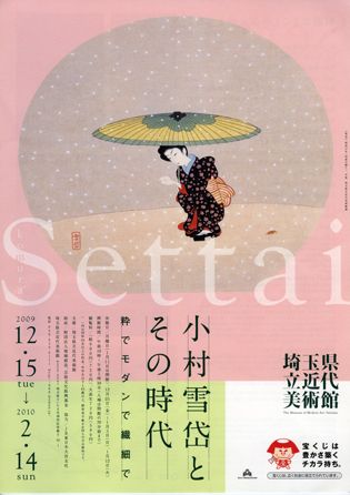 細身の女性、雪や雨、柳や草花などの主要モチーフがしっとり感を効果的に演出する一方、構図にメリハリがある。