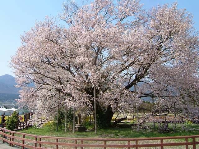 近くには、「一心行の大桜」という樹齢約400年、幹周約7.35m、樹高約14m、東西に21.3m、南北に約26mの大桜があり、毎年見事な花を咲かせて、訪れる人を魅了している。