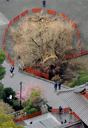 強風で3月10日に倒壊した鎌倉市の鶴岡八幡宮境内にある大銀杏(イチョウ)の根元から、長さ1センチ弱の緑色をした10を超える若芽(ひこばえ)が芽吹いたそうですね。