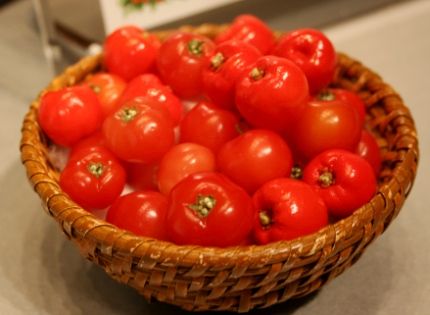 アセロラとは、果実の外見は、ヘタのついたトマトのようで、サクランボほどの大きさの中に種が3つ入っている。ビタミンCの含有量は100g中1700mgとレモンの約34倍、果実の中ではビタミンCの王様といわれいます。