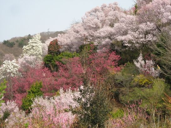 ♪ 紅を身にまといたる枝垂れ枝の桃に染まれる里の夕ぐれ