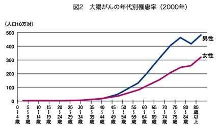大腸がんの死亡者数はこの20年で2倍以上に増え続け、現在、日本の女性のがん死亡原因の1位、また男性では胃がん、肺がん、肝臓がんについで4位となっているらしい。