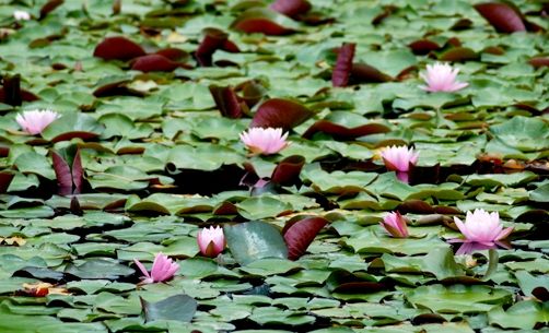 睡蓮の葉が池の面を覆い尽くし、その中に睡蓮の花が点々と咲いている風景は豪華で、一種独特の雰囲気があって私の好きな風景の一つです。