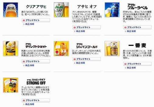 アサヒは或るネットの人気ランキングで5種類がベストテンに入る健闘を見せている。あまり当てにはならないとは思うが、或る程度以上のレベルを確保している証拠ではある。