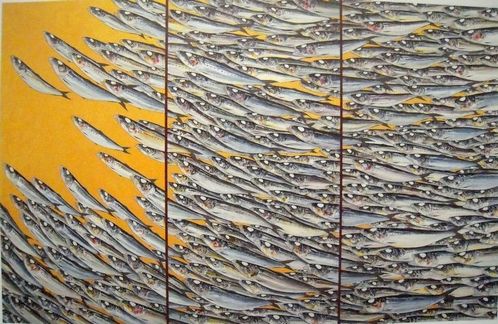 『このイワシが、天に向かうんだと思ったんですよね。このイワシが、全体の全部の今まで描いてきたイワシのすべての気持ちを受け止めて このイワシは結局、天に向かうんだと。自分がふるさとを出たりいろんな自分の感じてきた、そういう思いをすべてですね すべて納めた、あの目の中に。』