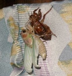 カーテンに止まらせておくと、上まで登っていって7時半から8時ごろになると羽化が始まる。