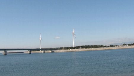 新舞子のマリンパークにある風力発電  風が無いので停止していた。
