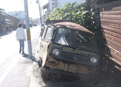 途中、トイレ休憩したいので本通りの国道へ出る。2時間歩いたところで喫茶店に入り休憩をとった。まだ10時半なので東海地方名物の「モーニングサービス」中で、コーヒーを注文したら、トースト半分とゆで卵が付いた。どうしますかと聞かれることが多いのにいきなり出た。これがたったの300円。やはり南下してくると物価も安くなる。