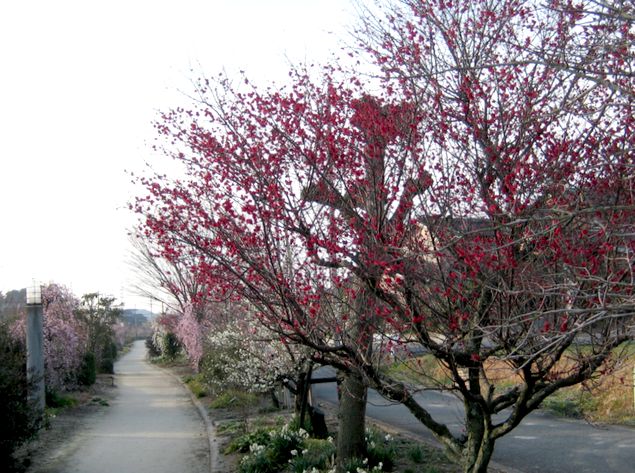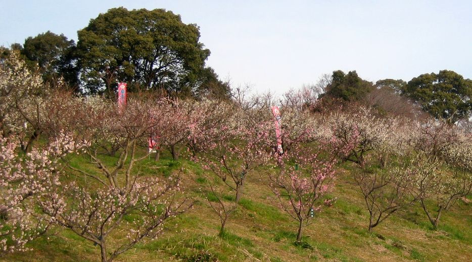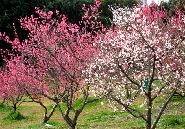 パークロードには色んな木が植えられているが、どれも管理が行き過ぎて、植物の持っている伸びやかさとかしなやかさが無く人工的な趣の木ばかり。梅の木もたくさん植えてあり、満開のも有ればまだ咲いてないものもあった。