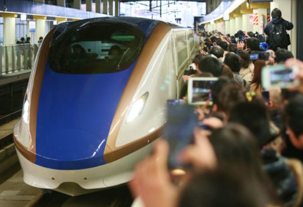 ♪ 飛行機と時間は同じ半額で加賀金沢へ走る「かがやき」