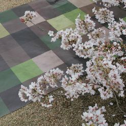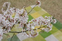「さくらシート」は、 日本各地の桜の名所で景観の持つ色を分析して配色された、景観の邪魔をしない野外を美しく楽しむためのレジャーシート。北海道仕様は、桜を楽しむ頃の北海道の土や草の色からつくった配色で、芝生仕様は、桜を楽しむ頃の関東の桜の名所の芝生の色からつくった配色。
