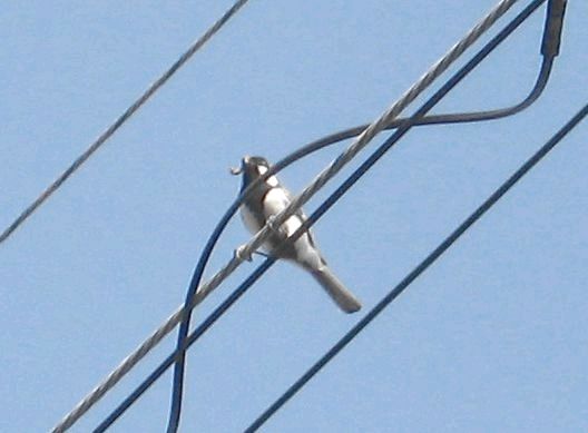 自宅では、四十雀が繁殖のハネムーン。餌を咥えてきて、電線の上で辺りを警戒している。