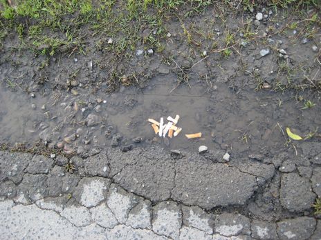 カラスは前方の道路に降りた。そして、咥えていたものをそこに置いたのが見えた。何をしてるんだろう。歩く方向なので徐々に近づいていくと見えて来た。水たまりがあって、その中に、さっきのパンの耳が幾つも固まって沈んでいるではないか。