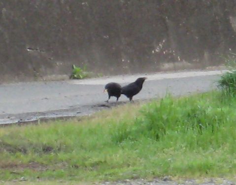 連れがいたらしくもう一匹加わって、二匹で柔らかくなったパンの耳を味わっている。今日の朝飯はこれでOKだなとか思いながら喰っているのだろう。
